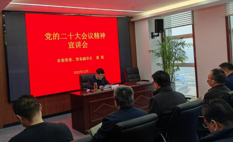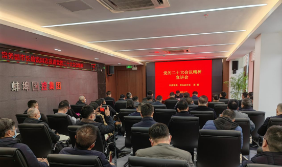12月8日下午,蚌埠市委常委、常務副市長葛銳到集團宣講黨的二十大精神。集團黨委書記、董事長陳建功主持會議,集團總部領導班子和中層管理人員,交投集團、水投公司、城開公司、建院集團、排水公司、糧食系統及汽運集團領導班子成員參加會議。